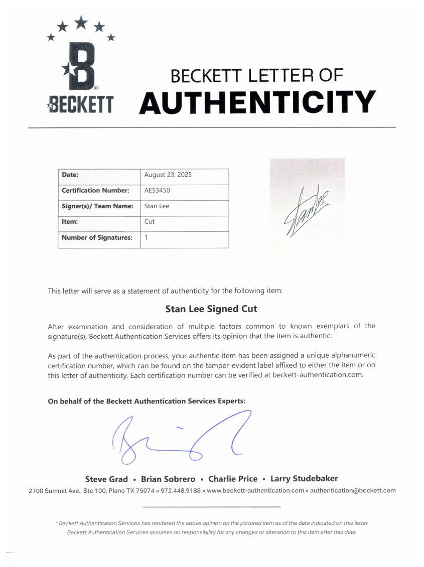 This elegant wood shadowbox showcases a striking Marvel Superheroes poster accompanied by Stan Lee's Beckett Authenticated signature. Included are a detailed comic art depiction of Stan Lee and two finely engraved plaques, all framed within a 32" x 35" x 3" display. A distinguished collectible, it honors the legacy of a legendary creator while adding refined charm to any space.
