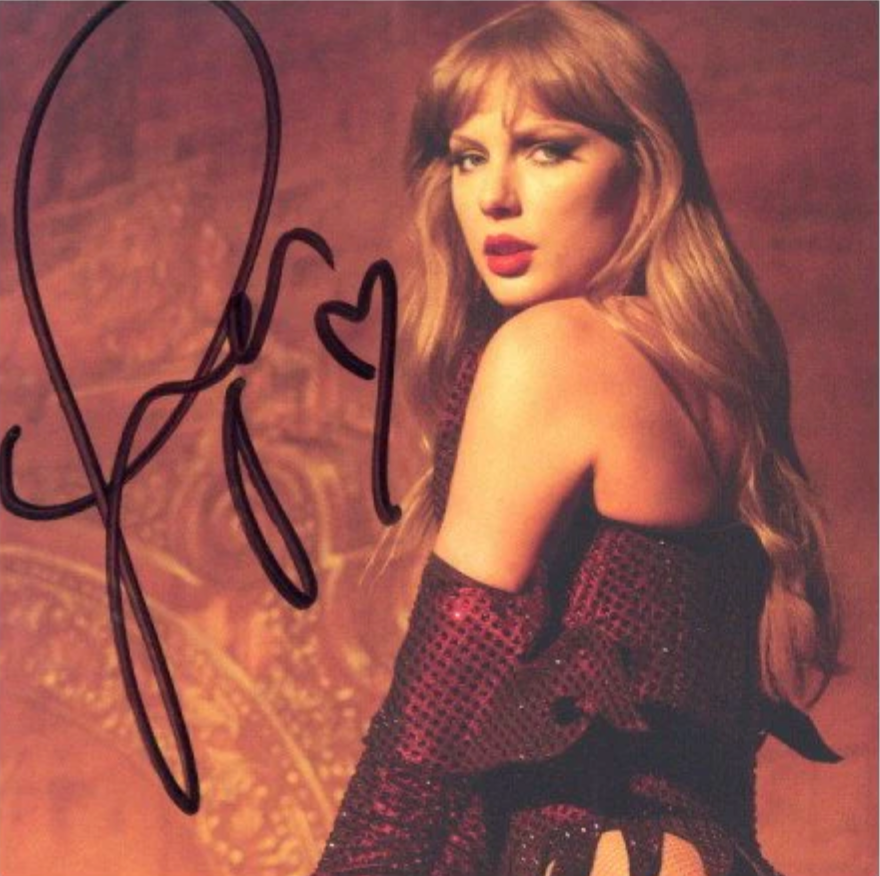 Celebrate an iconic moment in music history with this striking wood shadowbox display. Featuring a stunning photograph from Taylor Swift's Showgirl album, this piece combines visual artistry with authentic memorabilia. This centerpiece is a PSA Authenticated signed CD insert, guaranteeing the signature's legitimacy and value. Complementing the display are custom engraved plaques that add a refined, gallery-quality finish. Measuring 26"x36"x2.5", this substantial piece commands attention as a focal point for any room. Perfect for devoted collectors and music enthusiasts who appreciate both artistry and authenticity.